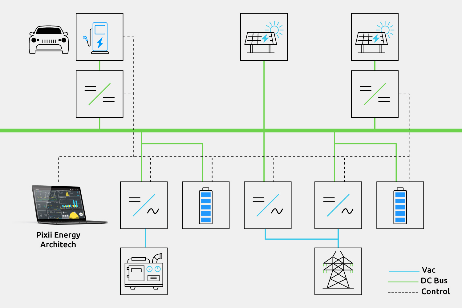 Managing a complex energy system requires more than hardware. PowerNode is controlled by Pixii Energy Architect, Pixii’s autonomous energy management system (EMS).